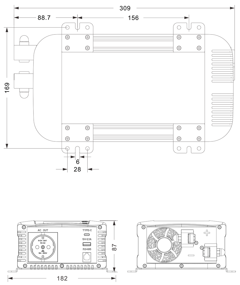 మెకానికల్ డ్రాయింగ్‌లు:(309x182x87మిమీ)