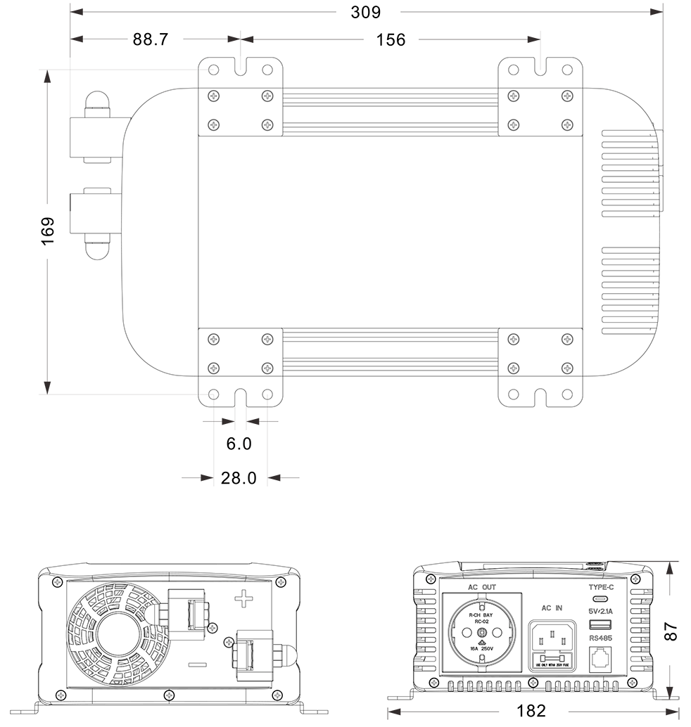 మెకానికల్ డ్రాయింగ్‌లు:(309x182x87 మిమీ)