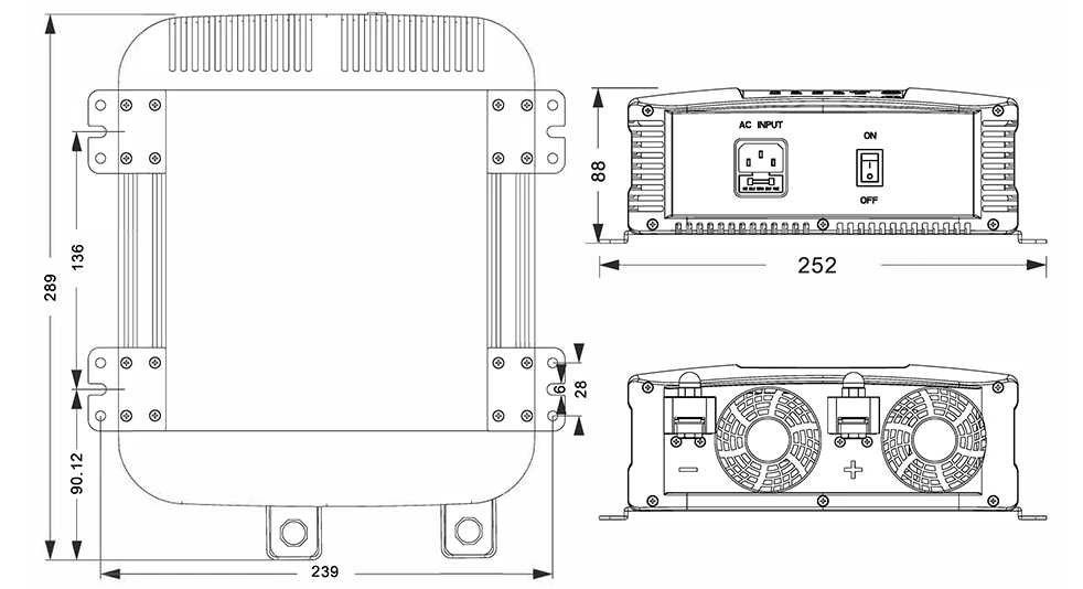 మెకానికల్ డ్రాయింగ్‌లు:(289x252x88mm)