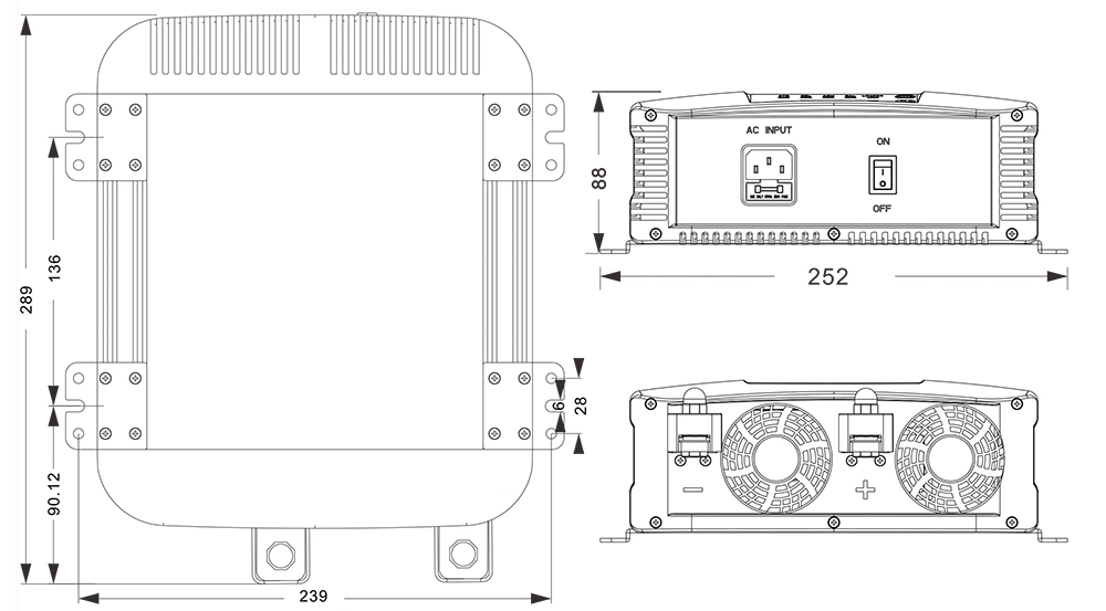 మెకానికల్ డ్రాయింగ్‌లు:(289×252×88మిమీ)