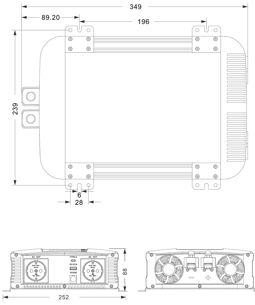మెకానికల్ డ్రాయింగ్‌లు:(349x252x88mm)
