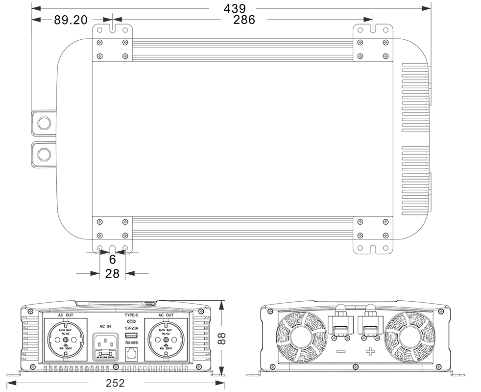 మెకానికల్ డ్రాయింగ్‌లు:(439x252*88మిమీ)