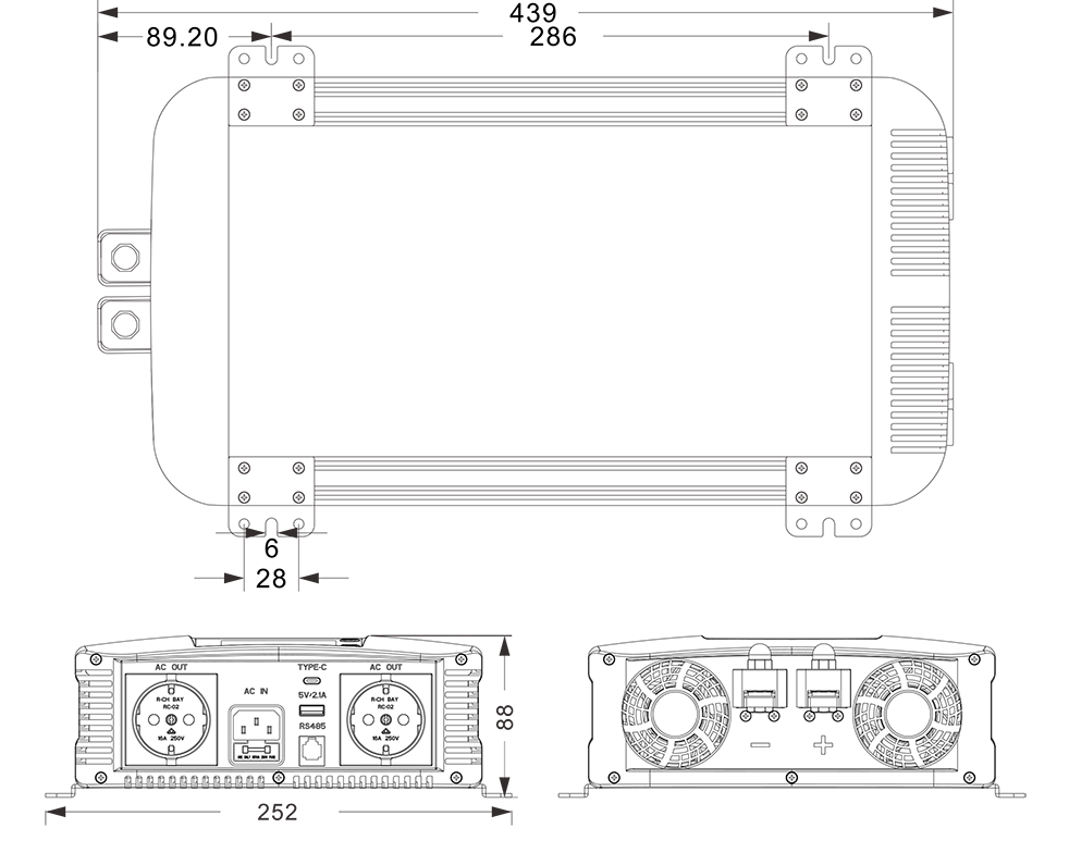 మెకానికల్ డ్రాయింగ్‌లు:(439x252x88mm)