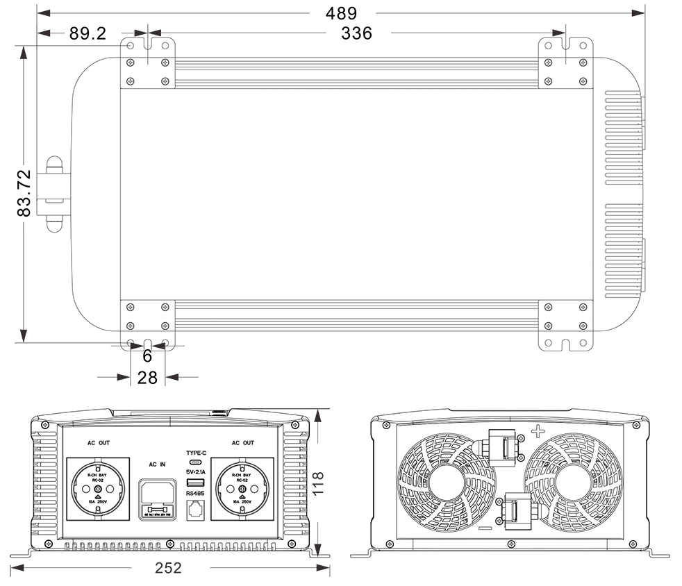 మెకానికల్ డ్రాయింగ్‌లు:(489x252x118మిమీ)