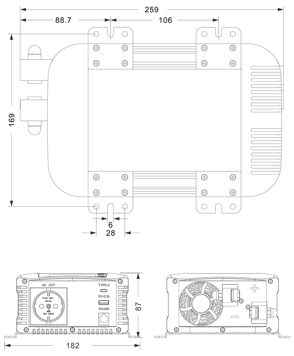 మెకానికల్ డ్రాయింగ్‌లు:(259x182x87మిమీ)